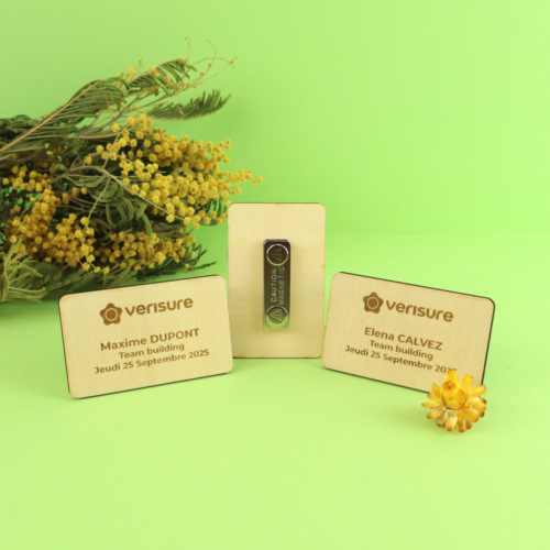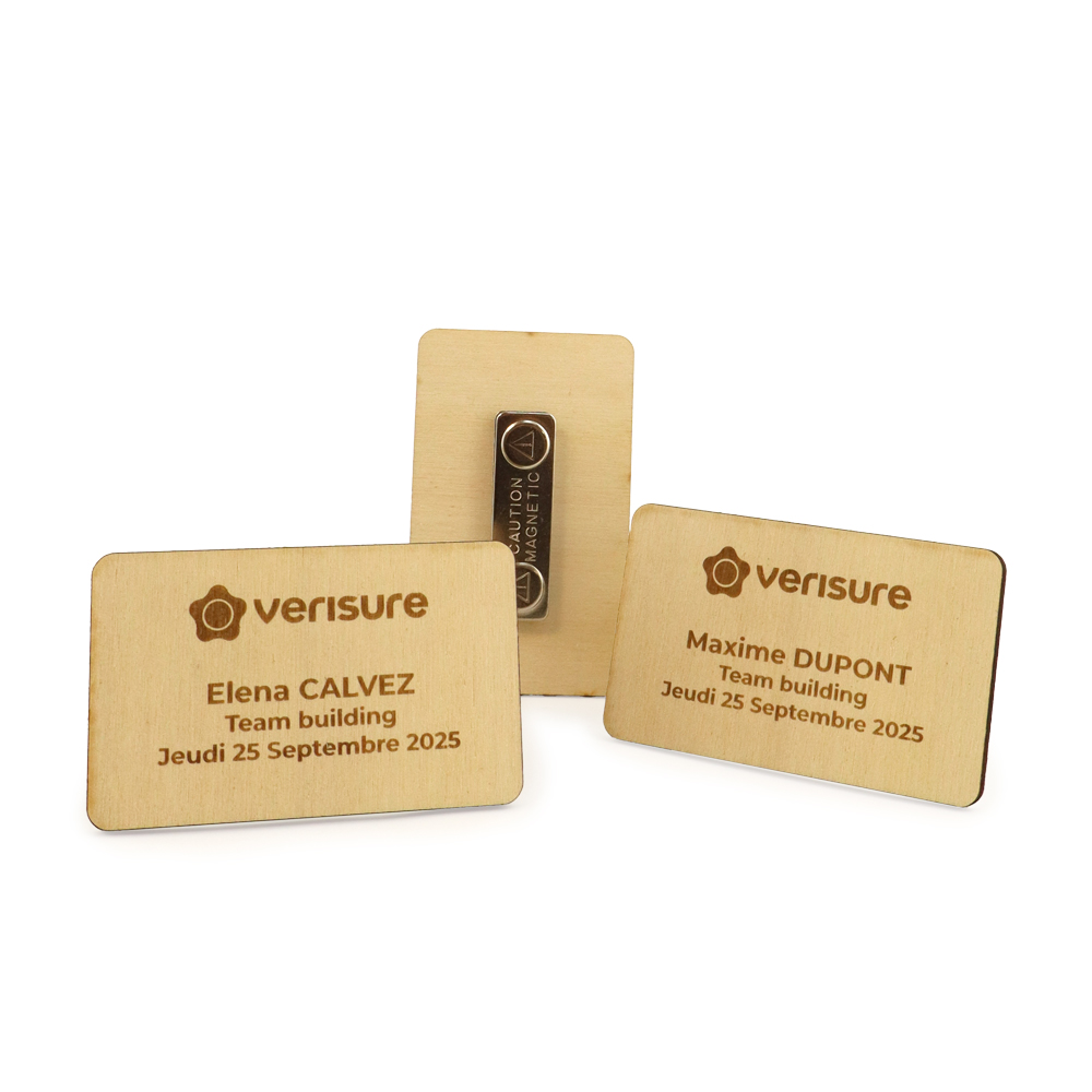 Ce badge magnétique en bois de peuplier est un objet publicitaire fabriqué en France qui allie visibilité et élégance. Conçu pour les événements ou l’accueil, il se fixe facilement grâce à son puissant système aimanté et peut être personnalisé de manière nominative.