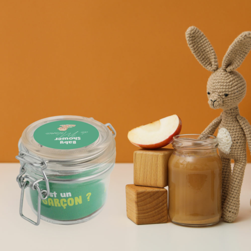 - Bandeau à l’intérieur du bocal (zone d’impression 220×50mm).