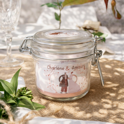 - Bandeau à l’intérieur du bocal (zone d’impression 220×50mm).
