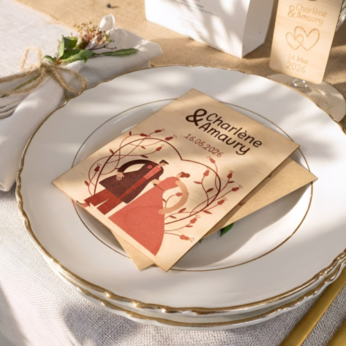 Objet personnalisable 100% France, cette carte bois A6 allie l’élégance d’un support naturel et la force d’un message pour une communication distinctive, facile à diffuser en volume lors d’invitations ou de remerciements.