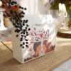 Chevalet de table en papier ensemencé de graines autoportant, à monter puis à planter une fois son usage fini. Fabriqué en France, ce support original permet une double visibilité (avant/arrière) tout en invitant à un geste zéro déchet. Idéal pour les accueils, comptoirs ou signalétiques temporaires.
