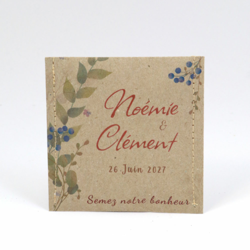 Ce sachet de graines 100 % France associe finitions soignées et couture apparente, pour une touche artisanale et élégante. Facile à distribuer, il se distingue par son format carré cousu en ESAT pour favoriser l’insertion de personnes en situation de handicap. Un objet personnalisable original qui rend le message positif tout en valorisant un geste nature et inclusif.