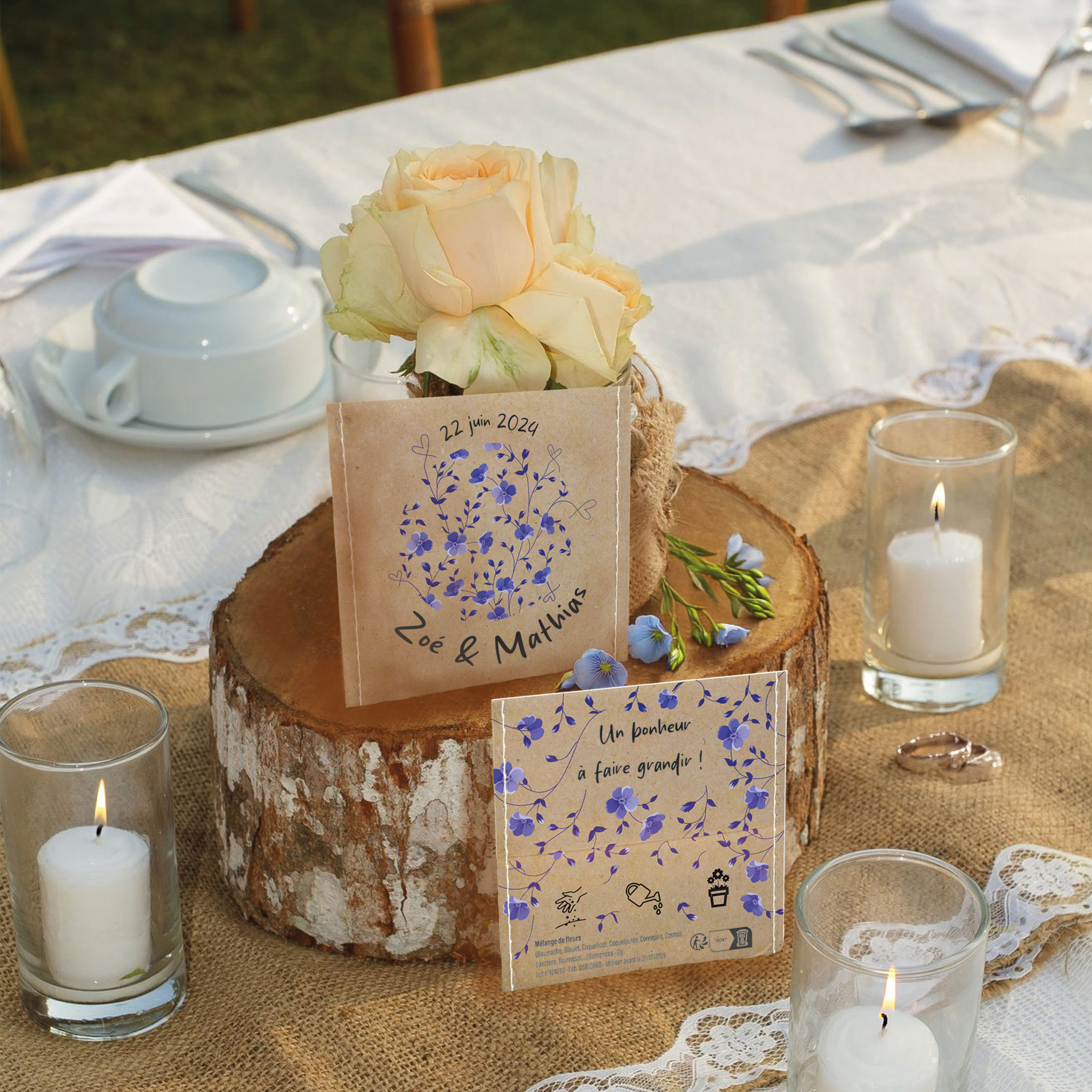 • Variétés de graines au choix selon disponibilité : Mélange aromatique, Mélange de fleurs, Tournesol.